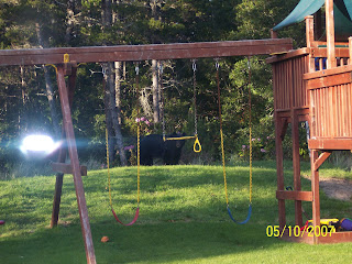 Oh, and we saw turkeys gobbling through our back yard! I mean, we had gotten used to the bear sightings (it pretty much freaked my mom out to see one for herself), but a turkey? We could be selling tickets to our own private zoo! I’m just kidding, Mom. I really will start looking into a solution to the bear problem tomorrow. It really is scary. (f you look carefully, you can see the bear in the picture with the swing set.)