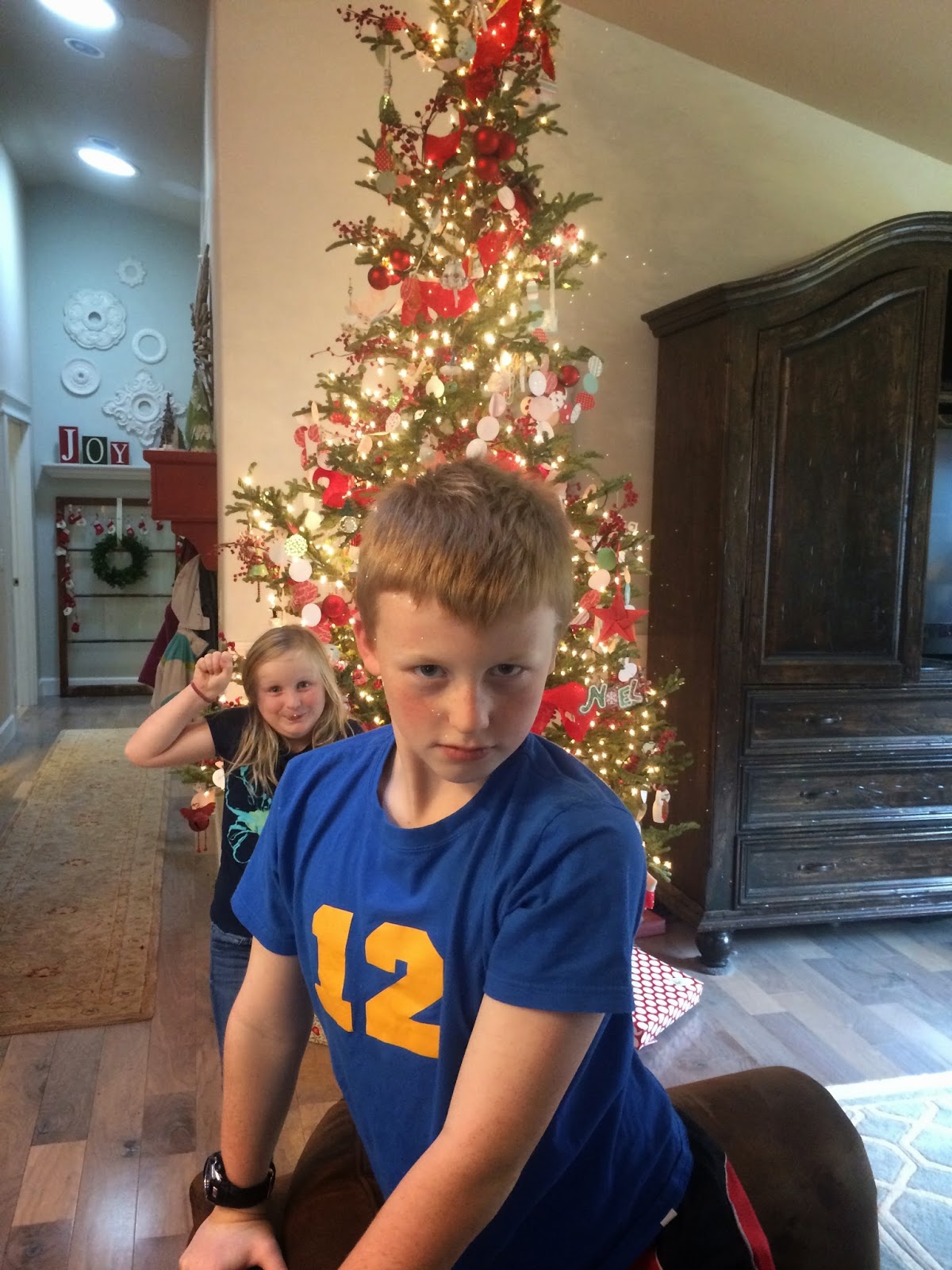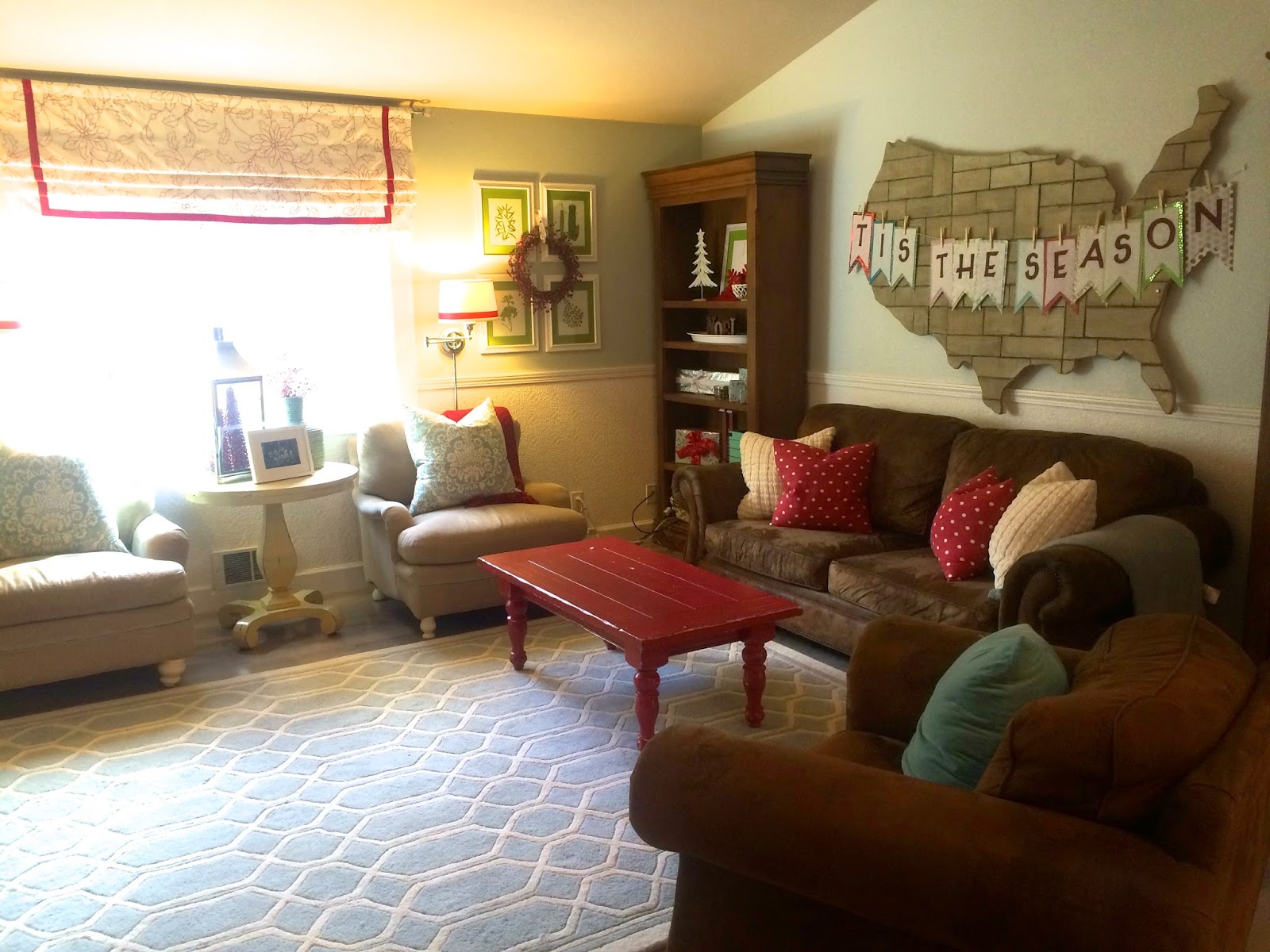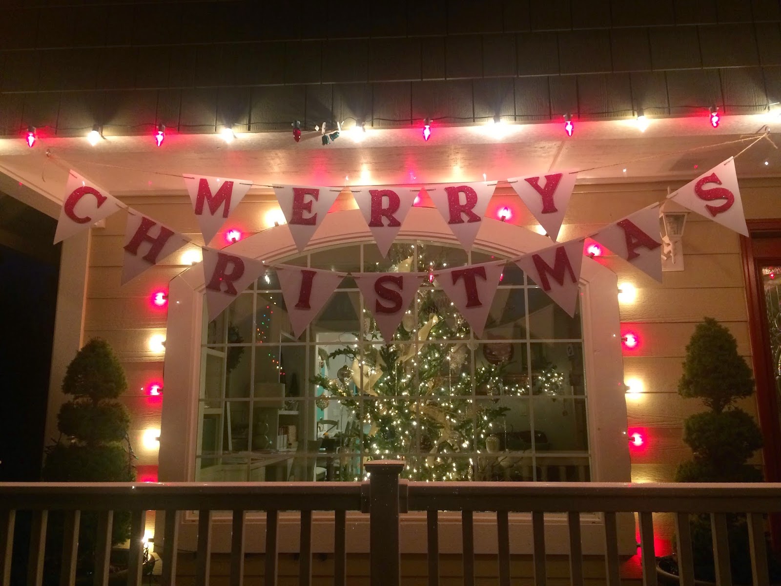 I’ve decided something. Next year for Christmas, (or maybe in February for Brian’s and my anniversary!), I am going to ask for a nice camera that can take good decorating pictures. My phone just isn’t cutting it anymore, and I feel totally left out of the decorate-your-house-and-then-take-awesome-pictures-with-your-nice-camera world. But anyway, my halls are decked. What do you think of my outdoor banner? I made it with corrugated plastic and foam that I glittered (although you can’t tell from the pictures, of course…grrrrrrrr). I was pretty proud of myself because I’ve never seen a banner outside before. 🙂