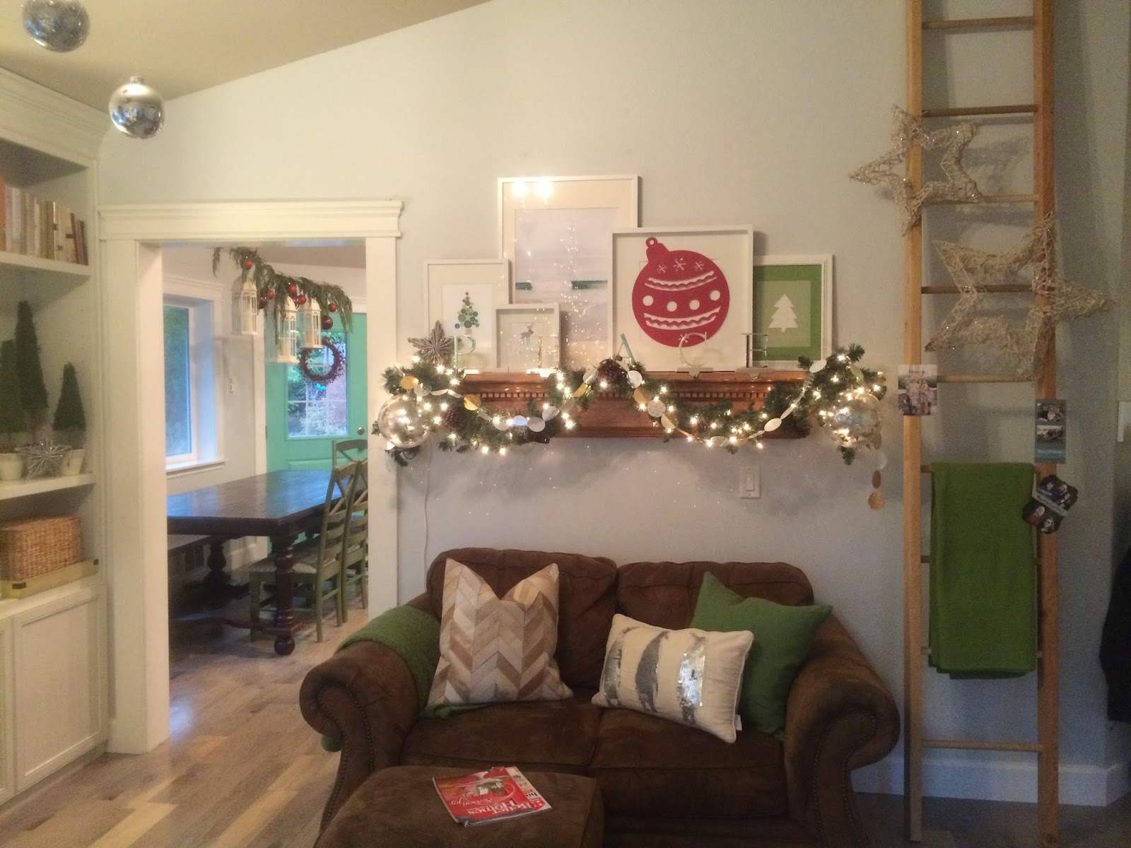 I’ve decided something. Next year for Christmas, (or maybe in February for Brian’s and my anniversary!), I am going to ask for a nice camera that can take good decorating pictures. My phone just isn’t cutting it anymore, and I feel totally left out of the decorate-your-house-and-then-take-awesome-pictures-with-your-nice-camera world. But anyway, my halls are decked. What do you think of my outdoor banner? I made it with corrugated plastic and foam that I glittered (although you can’t tell from the pictures, of course…grrrrrrrr). I was pretty proud of myself because I’ve never seen a banner outside before. 🙂