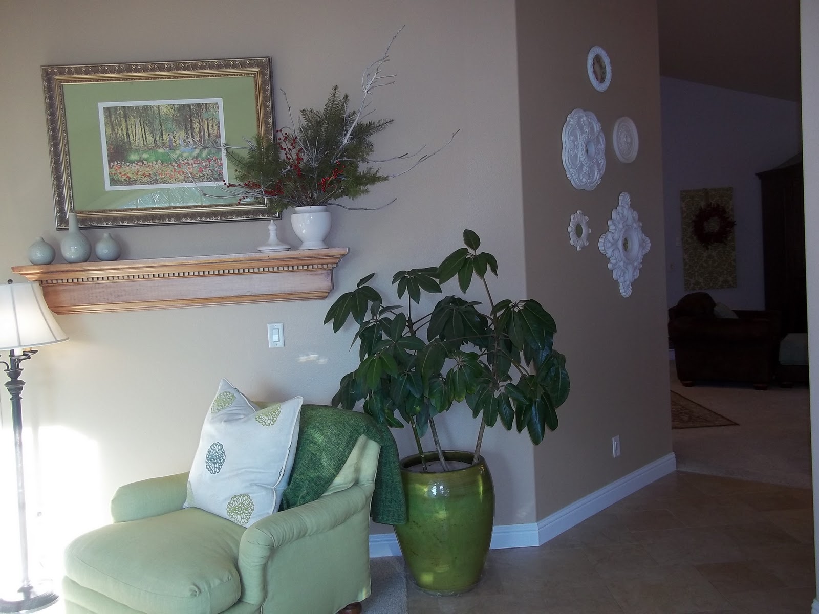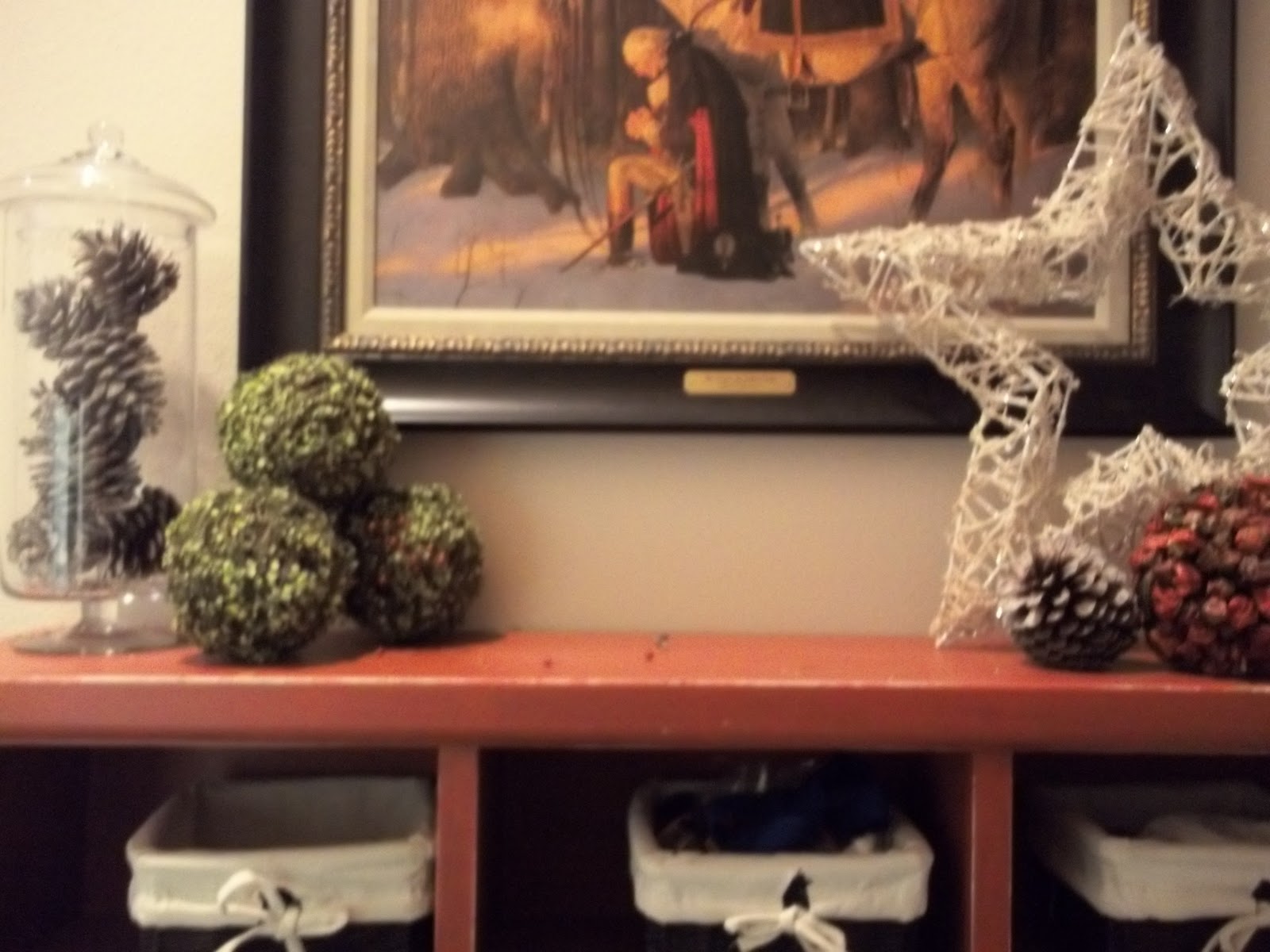 As I’ve told you before, the only thing that gets me through taking down Christmas without sliding into depression is the excitement surrounding whatever decorating items I get.  This year Brian gave me the rug I had pinned on my Pinterest board a couple months ago.  I love it.  I also got a little money to go after-Christmas shopping and picked up a couple fun stars at Pier 1 (and a bunch of stuff from Target).  I’m going to enjoy the stars for a couple of weeks and then I’ll pack them away with my Christmas stuff.  I  also kept a little holiday spirit by making a couple of holiday arrangements with Christmas tree branches, berries and pine cones.   I feel like they are neutral enough to just be winter decor.  What do you think?  Also, I never showed you the headboards I made for my girls’ beds.  I was going to do tufting, but I forgot to buy button-covering kits and then I just got too impatient…So anyway…they are still a huge improvement just the way they are.  And a while back I did a little project on my bedroom walls with my kids’ silhouettes.  I love them.  It’s amazing how individual and unique the outline of each of their faces is and how much personality each shows. And any day now, I’m going to be painting again, so I’ll show you how that looks when it happens.