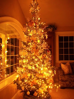 And finally, I’ve been decorating for Christmas and putting away the boxes left from decorating for Christmas for about three weeks now, and I’m loving it. I do wish I had some holiday toss pillows. I had intended on making some, but oh, well. My front room and family room trees are both Frasier Firs this year. It’s funny, because every year it seems my trees are leaning more and more toward the Charlie Brown variety. As a young kid, we always got Douglas Fir trees, and then at some point we all got smart and went for the Nobles–no offense to you true blue Douglas fans. And now I just seem to me more and more drawn to the trees with more space in between the branches. The thing is, though–I really miss the smell of the Douglas Firs. Nobles and Fraziers don’t smell like anything and that is a major sacrifice. So maybe next year I’ll get Douglas Firs and just chop a bunch of branches out. Yeah, that might work… But this year I felt a little sad that my bedroom didn’t have any sparkly lights, so when my friend mentioned to me that she lived on an old Christmas tree farm, I packed up my saw and some rope and headed out to chop down a third tree. We all know it’s best to decorate in threes. And this third one–well it really is a Charley brown tree, but I really love it. Every night I go to sleep to it’s glowing lights and Manheim Steamroller’s Silent Night on repeat. So wonderful.