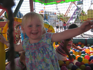 P.S. Here’s just a little bit more. I need to document that fact that Danin is an amazing talker. Last night at the pizza place, a woman came up and said to Brian, “How old is your daughter? She just came up to me and asked (pointing to the carousel) ‘Will you turn that on for me, please?'” That girl…
